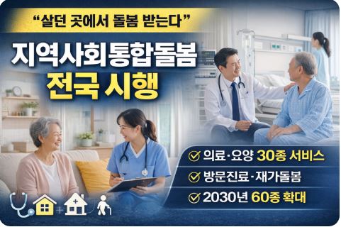 보건복지부는 제3차 통합돌봄정책위원회를 통해 **지역사회 통합돌봄 추진 로드맵**을 확정하고, 의료·건강관리·장기요양·일상생활 지원 등 4개 분야 30종 서비스를 연계하는 체계를 구축한다고 밝혔다. 정부는 향후 단계적으로 서비스를 확대해 **2030년까지 총 60종 돌봄 서비스**를 제공한다는 계획이다.