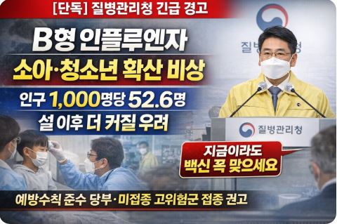 최근 소아·청소년을 중심으로 B형 인플루엔자 유행이 지속되고 있다. 질병관리청은 설 명절 기간 가족·친지 모임이 늘어나는 점을 고려해 손씻기·마스크 착용 등 호흡기감염병 예방수칙 준수를 당부하고, 아직 예방접종을 받지 않은 65세 이상 어르신·어린이·임신부 등 고위험군은 지금이라도 접종할 것을 권고했다.