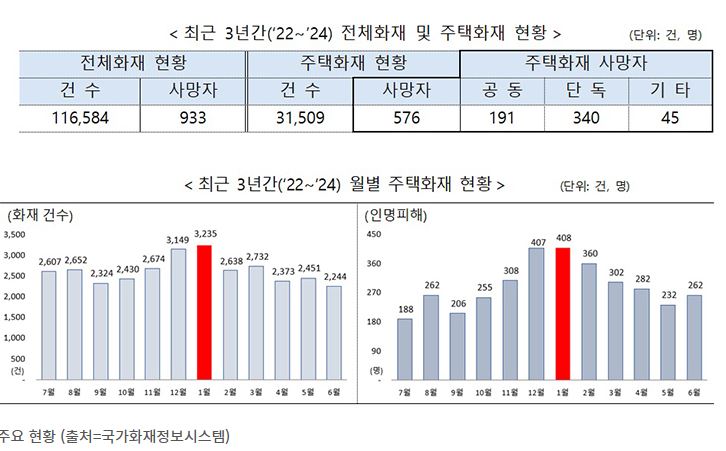 - 1월: 주택화재 3,235건(전체 주택화재의 10.3%)