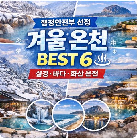 행정안전부가 직접 선정한 이번 겨울 온천 6곳은 경관·수질·안전성·접근성을 모두 충족한 검증된 장소입니다. 이번 겨울, 무작정 떠나는 여행이 아닌 정보로 선택하는 온천 여행을 계획해 보시기 바랍니다.