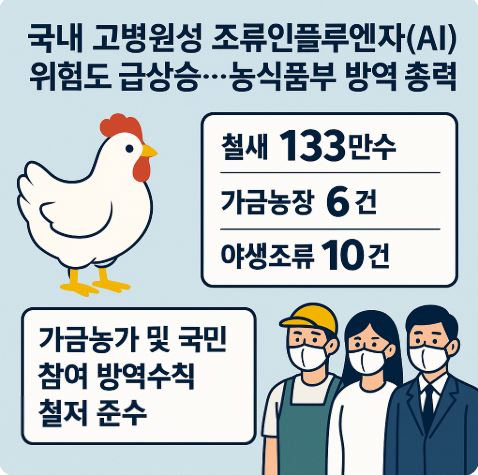 철새 133만수, 가금농장 6건, 야생조류 10건. 숫자만 보면 아직 ‘대규모 유행’은 아니라고 느낄 수 있지만, AI 방역의 관점에서 보면 지금이 바로 확산을 막을 수 있는 골든타임입니다.