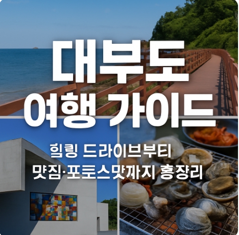 서울에서 약 1시간 30분이면 도착하는 대부도는 바다·자연·예술·음식이 조화를 이루는 서해의 보석 같은 섬입니다. 시화방조제를 따라 차를 몰다 보면 탁 트인 바다가 반겨주고, 낙조와 갯벌, 싱싱한 해산물까지 모든 여행자의 감성을 자극합니다. 이번 글에서는 볼거리, 먹거리, 쉴거리, 포토스팟까지 대부도 여행의 모든 것을 안내합니다.