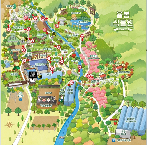 | 자가용 (내비주소) | 율봄식물원 정문/후문 무료 주차장 이용 가능 | 서울 출발 약 50분 |