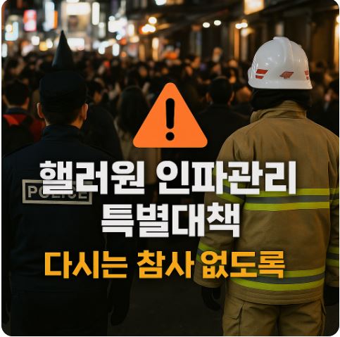 🎃 핵심요약: 행정안전부가 10월 24일부터 11월 2일까지 ‘핼러윈 인파관리 특별대책기간’을 지정했습니다.