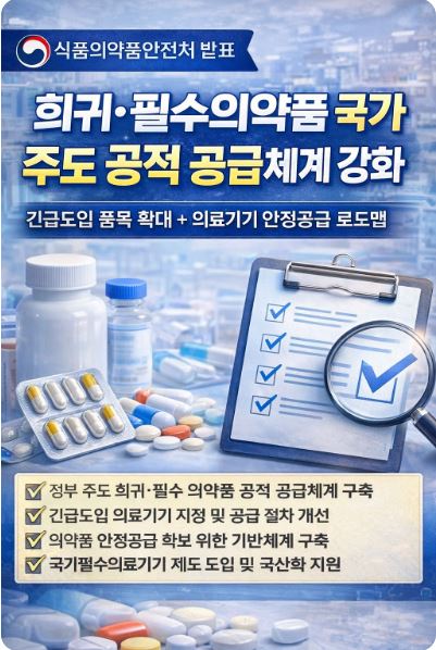 이번 식약처의 발표는 단순한 행정 개선을 넘어, 희귀·필수의약품과 의료기기를 국가 필수 공공재로 관리하겠다는 선언에 가깝습니다.