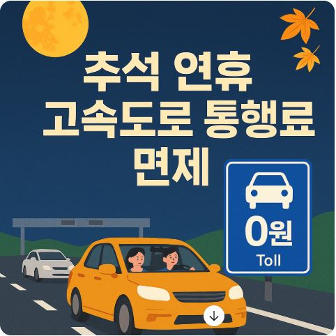 - 추석 연휴(10월 4~7일) 동안 고속도로 통행료 전면 면제