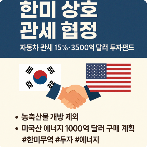 2025년 7월 말, 한국과 미국은 역사적인 '한미 상호 관세 협정'을 체결하며 새로운 통상 질서의 전환점을 맞이했습니다. 이번 협정은 단순한 관세 조정이 아닌, 향후 양국의 산업 구조와 투자, 식량 및 에너지 안보까지 포괄하는 전략적 패키지 협상이라는 점에서 의미가 큽니다. 이번 글에서는 협정의 개념, 협상 배경, 구체적 내용, 영향, 향후 과제까지 하나하나 짚어보겠습니다.