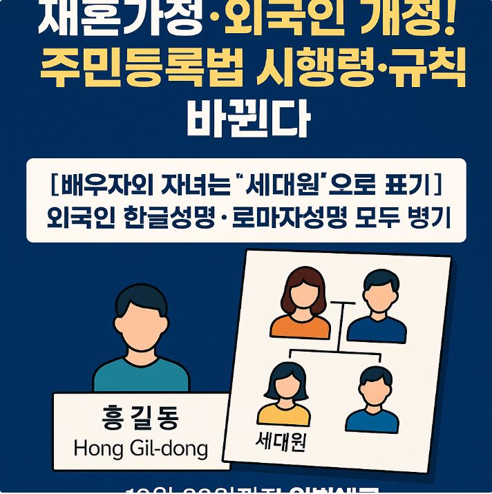 이번 개정은 단순한 서식 변경이 아닙니다. “가정의 다양성·사생활 보호·민원편의”를 모두 담은 제도적 진전입니다. 재혼가정이나 외국인이든, 누구든 주민등록등·초본 발급 시 불필요한 관계 표기나 신원확인 불편이 없도록 미리 준비하는 것이 중요합니다. 서류 제출 전 한 번 더 관계표기·이름 병기 여부를 확인해 보세요.