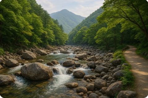 | 여행자 경험담 “주차장에서 막 걷기 시작했는데, 물소리와 함께 체온이 먼저 내려가더라고요. 대원사 경내의 고요를 지나 유평마을로 이어지는 구간에서 가을빛이 살짝 올라오는데… ‘아, 잘 왔다’ 싶었죠.” — 30대 직장인, 주말 당일치기 |